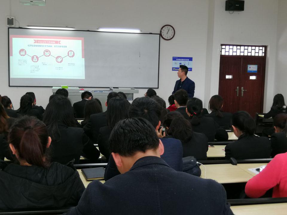 2018年3月30日下午1点,管理学院党总支委员会在6教201教室召开2018年第一季度党员大会。本次会议由管理学院书记邹均同志主讲。会议内容主要分为两大部分:一是传达、学习全国两会及市政委市政府重要精神;邹书记首先向我们做了2018年两会工作报告解读,分别从全国两会中的“过去五年工作回顾”、“政府五年来的主要工作”、“2018年经济社会发展总体要求和政治取向”、“对2018年政府工作的建议”等重点内容进行了具体讲解。在讲解过程中,邹书记以我们学校为例,讲了许多国家为教育事业所付出的努力与心血,让我们更加深刻的了解了国家五年来的成就。二是学习学校党委及学院党总支部2018年度工作要点。邹书记针对管理学院现状,重点讲解了党建团建工作责任、做好学生教育管理服务工作、教师思想政治工作等重要内容。最后,邹书记倡导我们平时要认真的学习领会两会精神,关注党政时事热点,加强自身思想素质。呼吁全体教师党员、学生党员、预备党员主动开展学习和宣传两会精神,进一步做好学院工作,彰显学院特色。