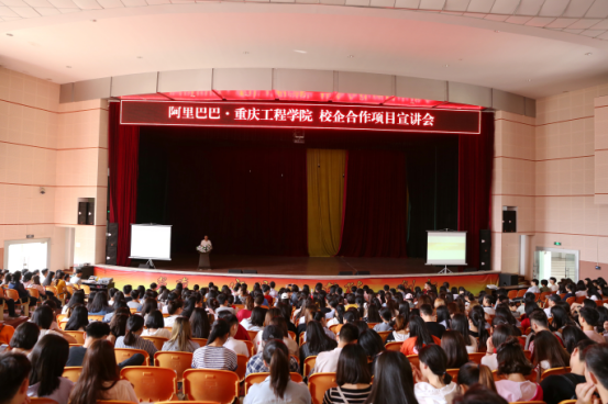 学校与阿里巴巴校企合作人才培养项目启动会在学术报告厅隆重举行,校企协同育人,共建客户体验实训基地。阿里巴巴客户体验事业群高级专家裘立锋、校企合作全国运营负责人章伟杰、校企重庆负责人王娜、校企基地运营负责人蒋玉菡,管理学院院长简玉刚、党总支书记邹均、副院长李玲、部分教师代表及管理学院2016级市场营销、电子商务专业700余名同学参加了宣讲会,会议由管理学院实习实训中心主任陈可老师主持。
