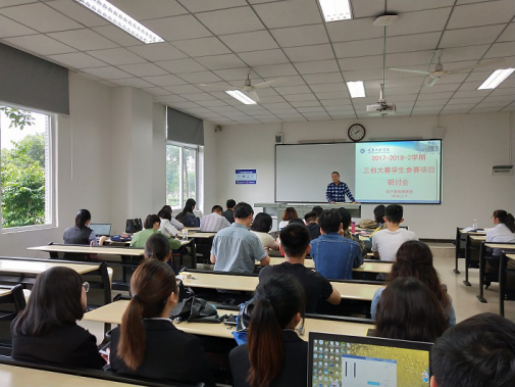为了帮助我校学生在重庆市大学生电子商务“创新 创意 创业”挑战赛中再创佳绩,帮助学生精心打磨参赛项目,进一步提升学生的专业知识与技能,2018年5月9日下午,我系电子商务专业带头人李明教授、电子商务教研室全体教师以及准备参加三创大赛市赛的学生团队齐聚6教111教室开展了赛前研讨会。