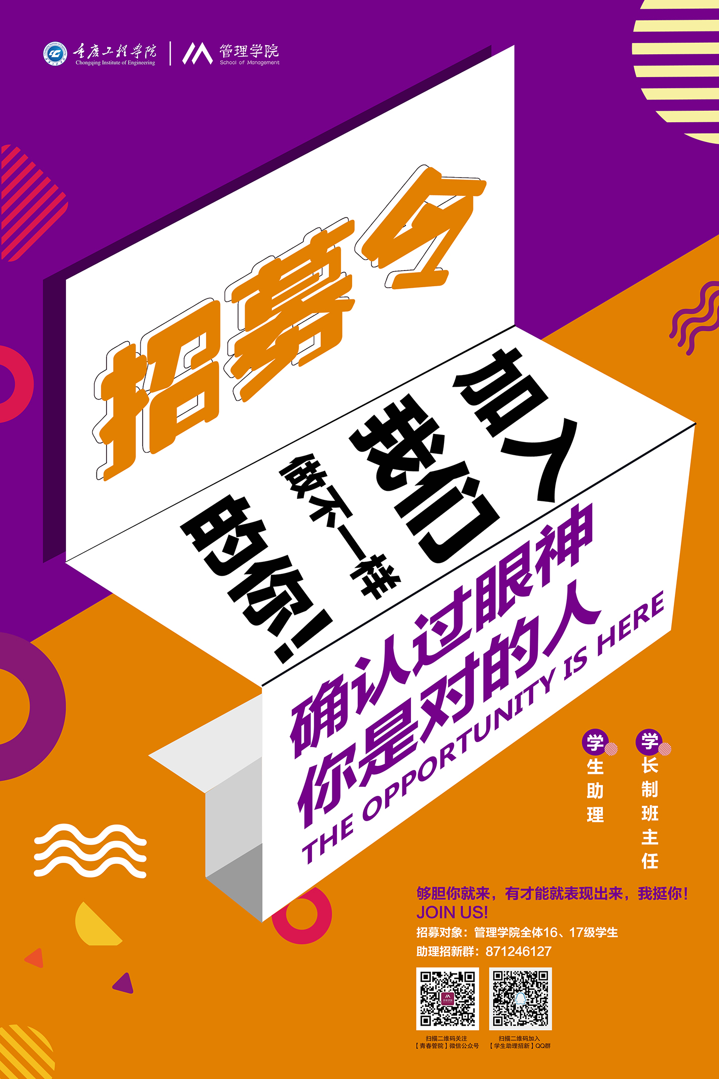 新的学年,管理学院将着力加强内涵建设,努力在教学改革、学生工作等方面都上一个新台阶。学院党总支为了进一步推动我学院队伍建设,提高工作的水平和工作效率,拟从全院学生中聘用“学生助理”。