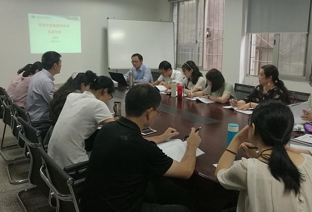2018年9月19日,在3教学楼313会议室,管理学院对本学期新进教师开展了“备课”的专题培训。