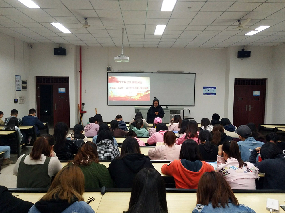 为了深入学习和贯彻习近平新时代中国特色社会主义思想和党的十九大精神,切实开展“不忘初心,牢记使命”主题教育活动。按照校党委安排,结合我院工作实际,管理学院学生党支部于2018年10月24日18:30,在6201教室举行“管理学院学生党支部‘党史杯’初赛”。本次活动由管理学院学生党员实践教育分中心承办,2016级、2017级全体入党积极分子、发展对象、预备党员和党员参与。