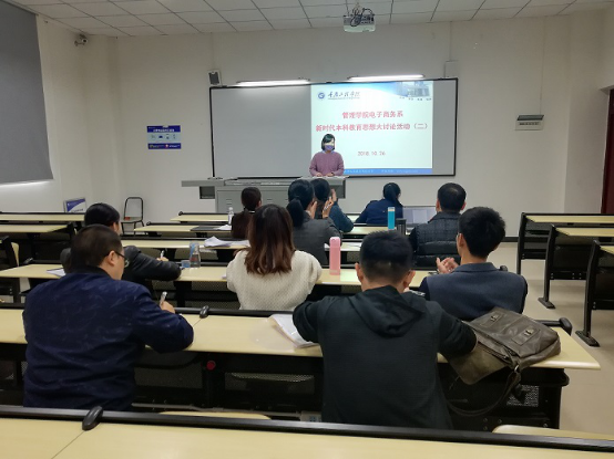 为认真贯彻落实习近平总书记在全国教育大会上的重要讲话,切实提高我校人才培养质量,以优异成绩迎接本科教学合格评估工作,2018年10月26日,在第六教学楼101教室,电子商务系组织开展了第二次新时代本科教育思想大讨论活动。