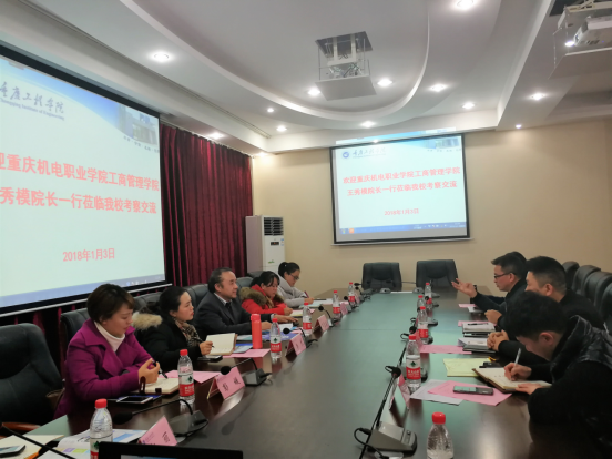 2019年1月3日上午10:00,重庆机电职业学院工商管理学院王秀模院长一行来我校进行考察交流。