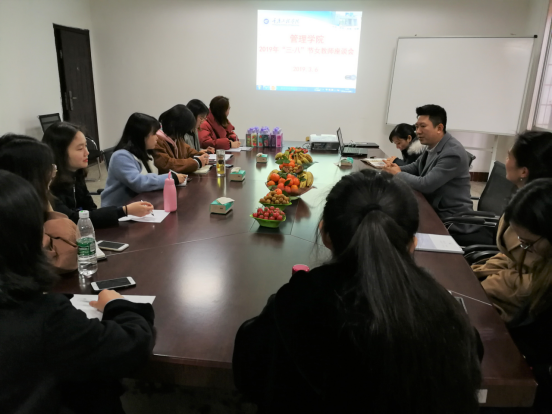 2018年3月6日下午,管理学院党总支书记邹均、副院长李玲在3313组织召开了“三八妇女节”女教师座谈会。
