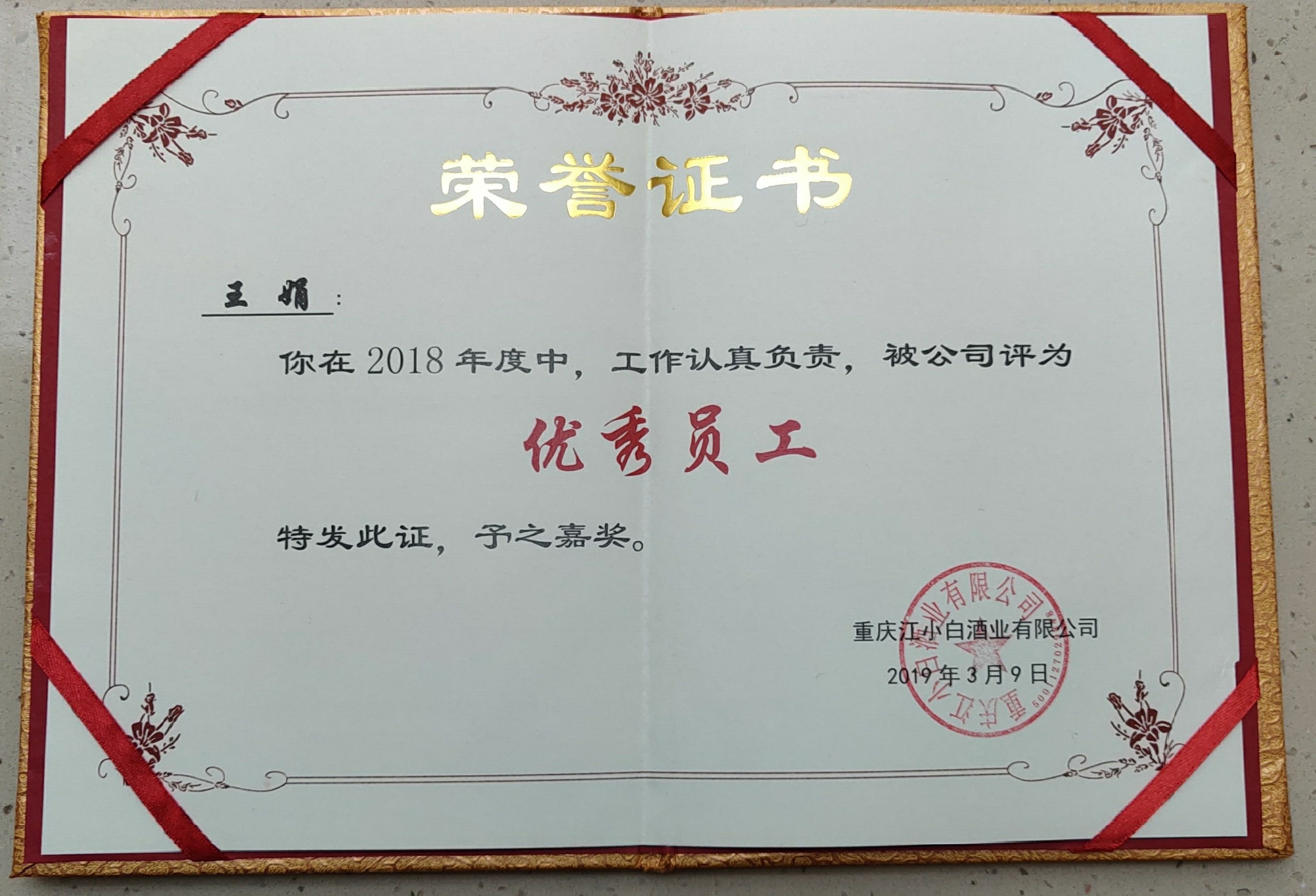 2019年3月9日,江小白酒业2018年度表彰大会在重庆悦来国际会议中心举行。会上,管理学院首届“江小白”订单班王娟同学被江小白酒业评为2018年度优秀员工。