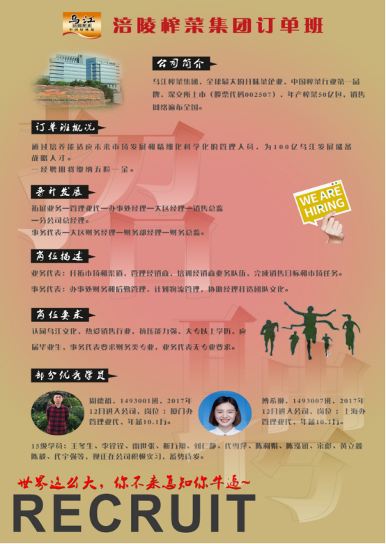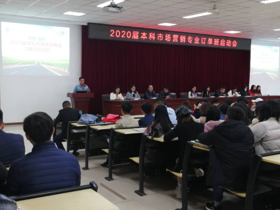 3月25日下午16时,管理学院在南泉校区第六教学楼302报告厅举行2020届本科市场营销专业订单班启动会。管理学院执行院长简玉刚、副院长陈可、实习实训中心主任张中义、就业科长王燕楠、工商管理系主任周小波、副主任但秀丽、订单班班主任以及2020届本科市场营销全体同学参加此次宣讲会。