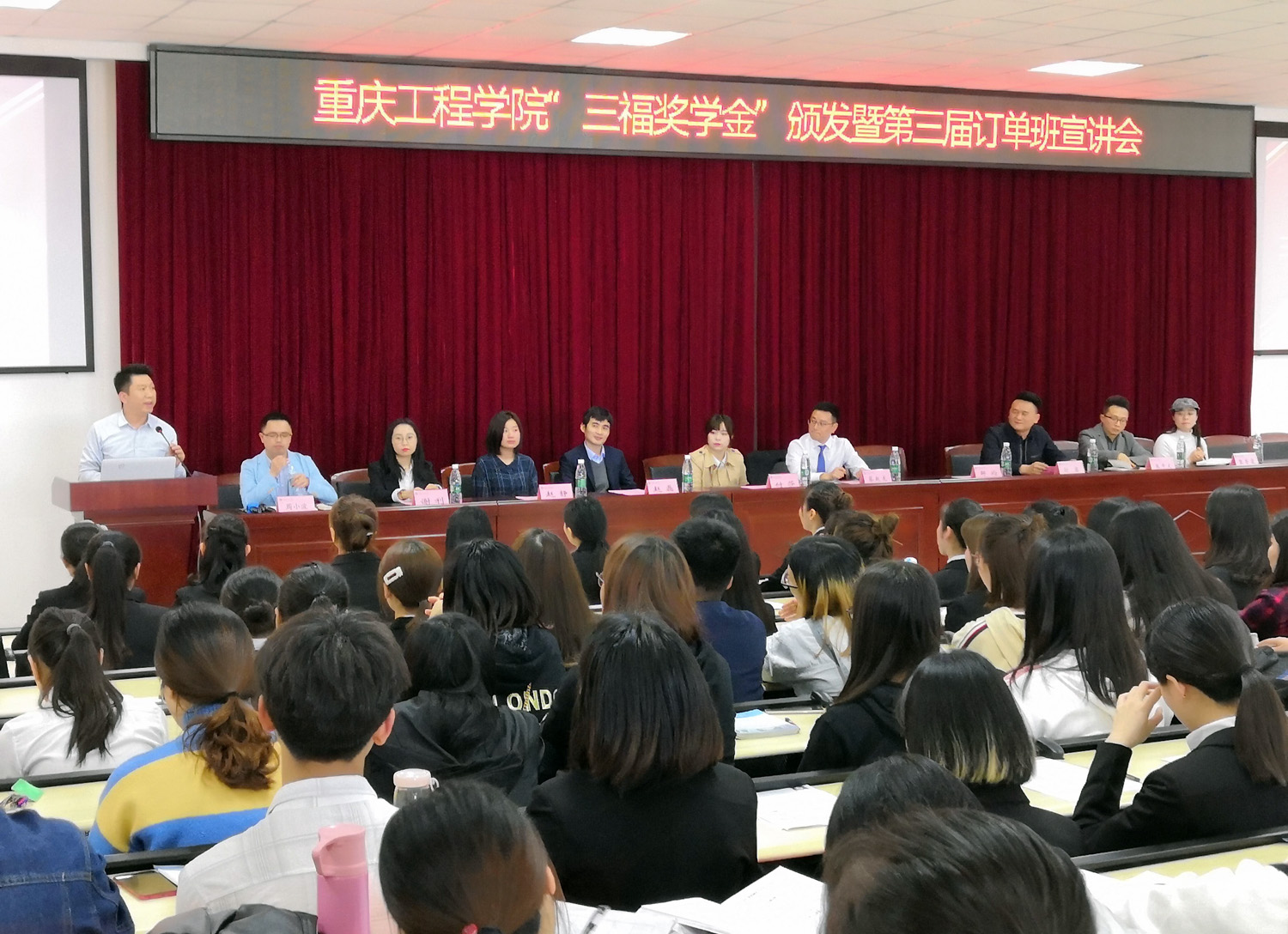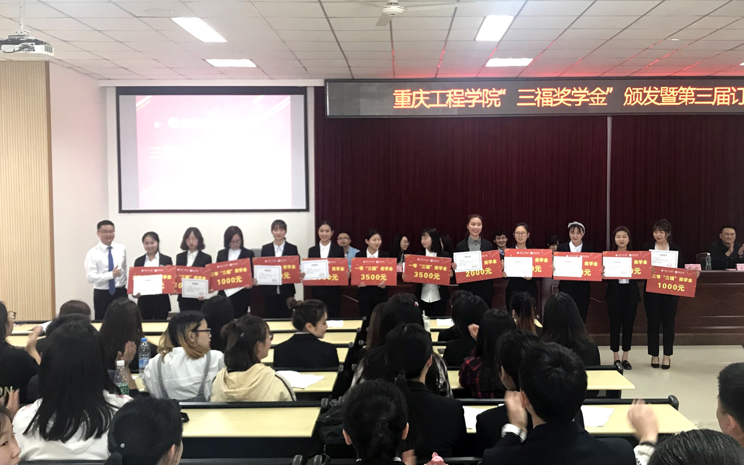 一直以来,重庆工程学院秉承“通识教育+专业教育+行业教育”校企合作、产教结合的人才培养模式,管理学院积极探索校企合作模式以及拓展校企合作的深度,得到了社会各界企业,特别是三福给予的大力支持,得到了同学们的高度认可,取得了丰硕的成果。过去的两年,我们不仅成立了两届校企合作订单班,还共同成立了零售行业学院。同时聘请了福建省三福百货有限公司副总裁费晓榕为“荣誉院长”、“客座教授”,集团人事总监林萍、西南大区总经理黄福明为“客座教授”。2019年是颁发“三福奖学金”的第2年,是订单班合作第3年,相信我校与三福时尚的校企合作会达到更新的高度,也相信同学们进入三福订单班能学有所获、做有所成!