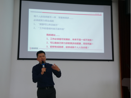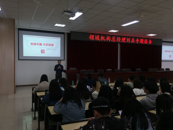 报告中,刘总从公司简介、企业文化、卓越盟友、菁英合伙、晋升通道等多个方面对领域机构做了全方位的解读,让同学们对地产行业和公司情况有了深刻的了解。并结合“毕业8大问题”,从“憧憬”、“迷茫”、“怀疑”“梦想”等关键词对毕业季的青春做了详细阐述,用大量真实案例和自身在地产行业的发展路径,给同学们提出了行业、职业选择的良好建议。