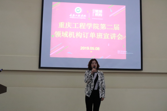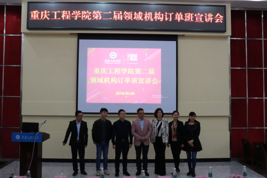 领域机构董事&副总经理袁晓兰指出:公司从董事长到各级经理都非常重视订单班的人才培养,承诺为同学们提供公开、公平、公正的工作环境,提供完善的培训体系。领域机构董事&副总经理田野分享了“地产营销人的华丽蜕变”,通过真实的案例让我们见证了公司高管的职业生涯发展历程,希望同学们能够在领域做到深耕、专业、狼性。人资中心总监沈琼宣讲了“领域机构企业文化”,对订单班学员未来从事岗位、薪资待遇、晋升通道等相关信息做了重点说明。我校2019届优秀学生代表江姗、段艺分享了在领域机构学习成长的经历。