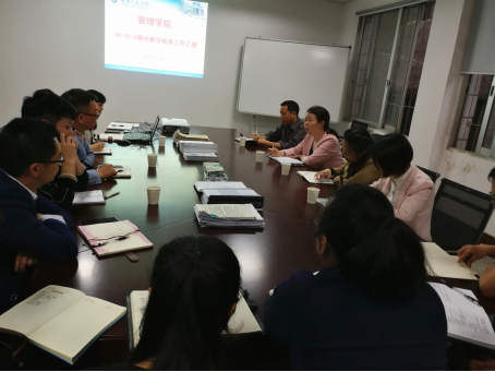 检查会后,学院马上召开了期中教学检查反馈会。在会上,简玉刚院长指出前期工作的不足之处,特别针对学生作业和成绩册登记提出建议:作业本形式应统一、文本格式应规范、作业批改问题应指出问题、意见与建议。