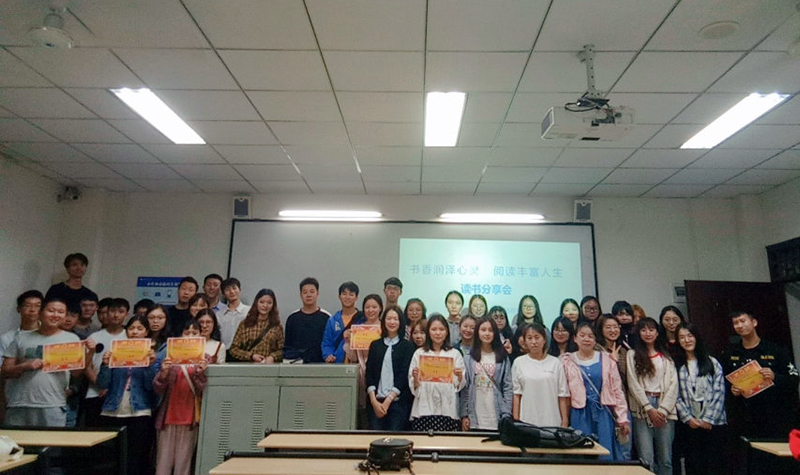 2019年5月19日下午18点,班导师李莉老师组织全体同学在第六教学楼214教室举行了“书香润泽心灵,阅读丰富人生”的读书分享活动。