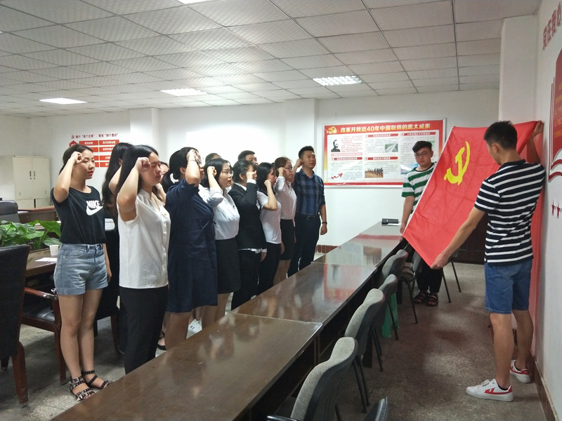 活动结束前,全体毕业党员在曾艳灵同志的领誓下,面向党旗重温入党誓词。
