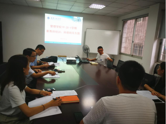 2019年9月4日13:00-16:30,管理学院启动本学期新教师系列专题培训活动。13:00-16:30,在3313会议室,管理学院院长简玉刚为新教师开展第一堂培训讲座:师德师风专题。
