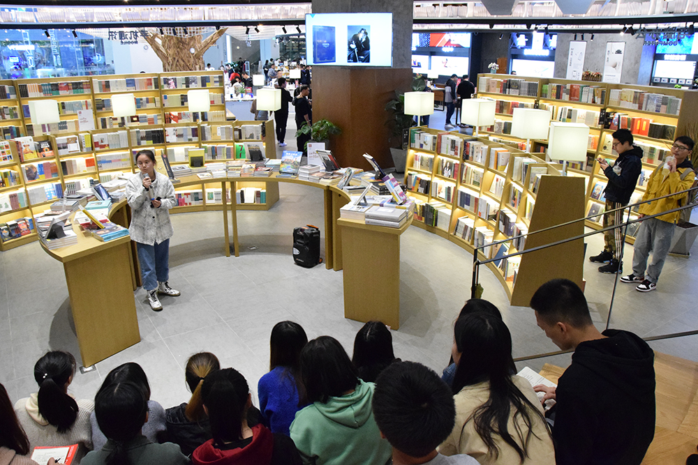书本身是一个输入的过程,当我们能将书中所学以各种方式输出,用于工作和生活,本身就完成了一次知识的升华。输出的方式众多,读书分享就是其中一种。为提高学生综合素质,促进读书爱好者的沟通交流,提升文化认可感,2019年10月27日14:00,管理学院联合苏宁极物,在苏宁极物来福士旗舰店举办了一场别开生面的读书分享会,来自管理学院的三十多名读书爱好者参与其中。