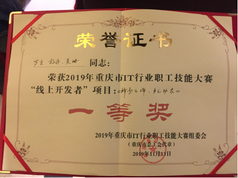 近日,由管理学院王翅老师、王燕楠老师指导的团队在2019年重庆市IT行业职工技能大赛中双双荣获一等奖的好成绩。
