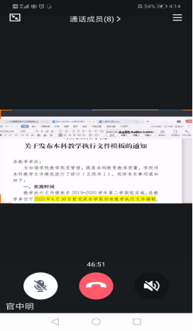 2020年4月15日,财务管理教研室召开了以“关于新版本科教学执行文件填写规范的培训”为主题的线上教研讨论会,财务管理全体教师参与了此次会议。