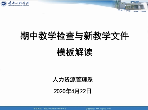 为切实加强教学管理和教学质量监控,规范教学行为,全面掌握系部本学期开学以来教学的整体状况,及时发现并解决教学过程中存在的问题,提高教学质量和教学水平,进一步加强教风、学风建设,积极贯彻学院提升教学质量的要求,落实期中教学检查的具体检查内容。为了更好的应对本次期中教学检查,2020年4月22日下午16:00-18:00管理学院人力资源管理教研室全体教师通过企业微信会议的形式开展了本学期的第八次教研活动。