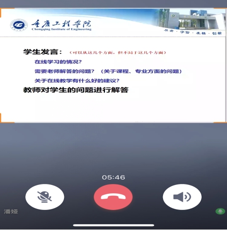 交流会中上,三个年级的同学代表都积极发言、气氛热烈,在反馈学习情况时畅所欲言。首先,同学们对教师的教学工作给予了相当的高的评价,认为老师们兢兢业业,用心准备,为提高在线教学效果付出了很多心血,并用语言和文字表达了真诚的感谢。同时,在老师的鼓舞下,同学们纷纷大胆地表露自己内心的想法,为教师教学提出了很好的意见和建议, 教师们也仔细倾听、详细回答,对同学们提出的疑问有耐心地进行解答,并针对部分问题提出了初步的改进的方法及措施。