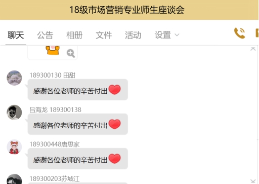 为进一步改善学生学习环境和提高教学管理水平,为学生健康、快乐、高效地进行在线学习奠定基础,也为加强学生学习效果,提高教师教学质量,工商管理系在2020年4月29日通过QQ视频会议召开了市场营销专业在线师生座谈会。市场营销2017级、2018级及2019级的师生交流会分别由周小波主任、潘娅老师、郑兴鹏老师组织,工商管理系承担相应课程任务的教师全体参加。