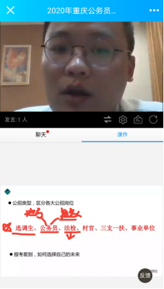 受疫情影响,为促进高校毕业生实现稳就业,2020年重庆市公务员、选调生、三支一扶、乡村教师等招录新政策做了明确说明。杨老师围绕政策公告解读、考情简介、备考指导三个方面的主要知识对同学们进行了备考指导,结合重庆市历年来的考试情况和具体案例帮助同学们梳理了从选择、备考到成功面试、上岗的全过程,对今年的毕业生备考学员给出了指导性意见。