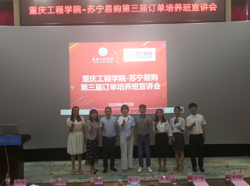 为了拓宽市场营销专业学生就业渠道,促进深度校企合作,2020年6月5日13:00,管理学院在阶梯报告厅举行了苏宁易购第三届订单班宣讲招聘会。苏宁重庆地区管理中心副总经理陈红艳、红孩子总经理吴亚、人事经理骆孟飞一行到校进行宣讲招聘。重庆工程学院管理学院副院长陈可、实训中心主任张中义、苏宁易购订单班班主任杨仕梅及2017级本科市场营销专业同学参加了此次宣讲会,会议由工商管理系主任周小波主持。