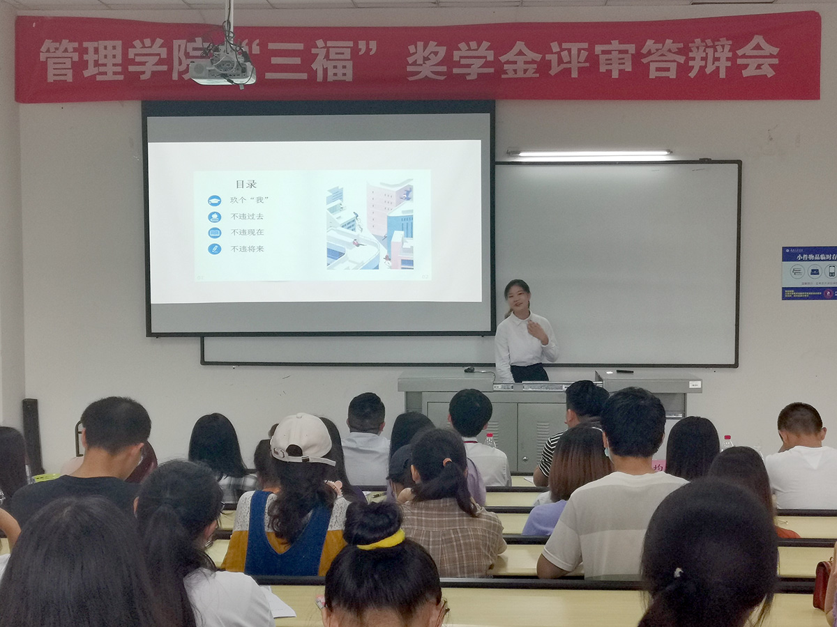 经学生自我申报、班级民主评议、学院推荐,进入本次答辩评审会的共有16名候选人,本次答辩分为答辩展示和评审提问两个环节。“三福”奖学金评审工作领导小组将根据该学生年度综合评定成绩的80%加上本次现场答辩的20%,评选出“三福”奖学金最终的获得者。