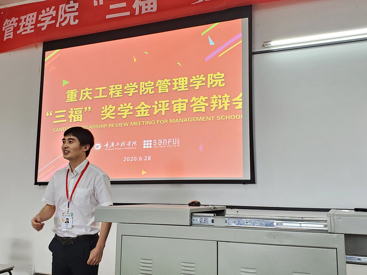 2020年6月28日下午14:00,管理学院“三福”奖学金答辩评审会在6教204教室召开。福建省三福百货有限公司西南大区招聘主管赵磊、管理学院党总支书记邹均、工商管理系主任周小波担任本次评审答辩会的评委。