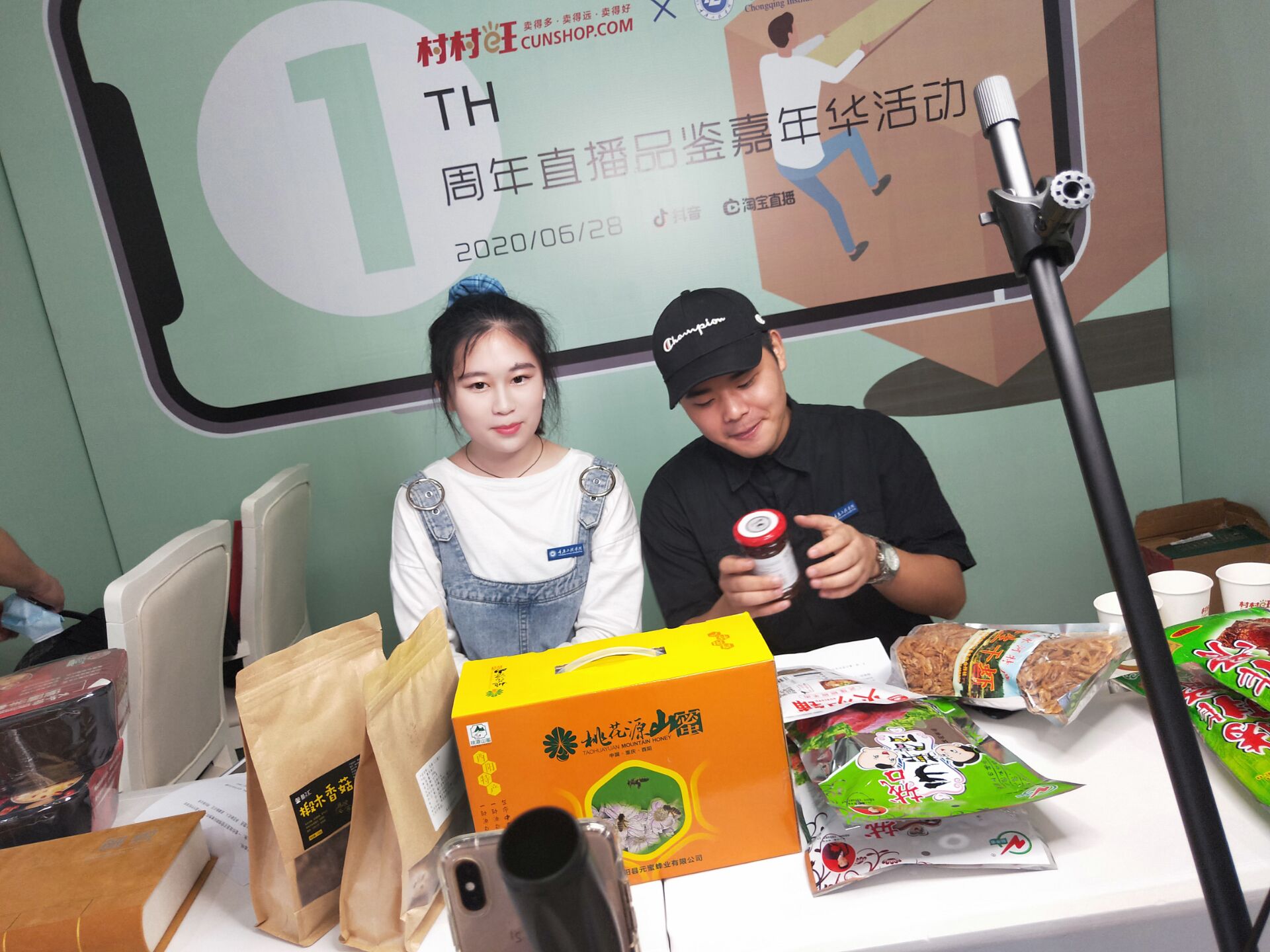 活动于2020年6月28日在重庆互联网产业园村村旺展示中心举行。本次活动特设立校企直播间专场,由黄祥峰和刘秀名娜同学担任主播。管理学院陈可副院长对校企合作进行介绍,双方将会围绕农村电商人才培养与项目孵化、共建大学生电商实训项目、农村电子商务项目运营以及开展区(县)域农村电商研究等方面进行深度合作,随后主播对整个活动现场进行直播。通过本次活动,同学们参与项目实践,不仅对农村电商有了新的认知,还锻炼了电商直播、活动策划能力。同学们的表现受到了重庆供销电商发展有限公司领导和参展企业的认可。