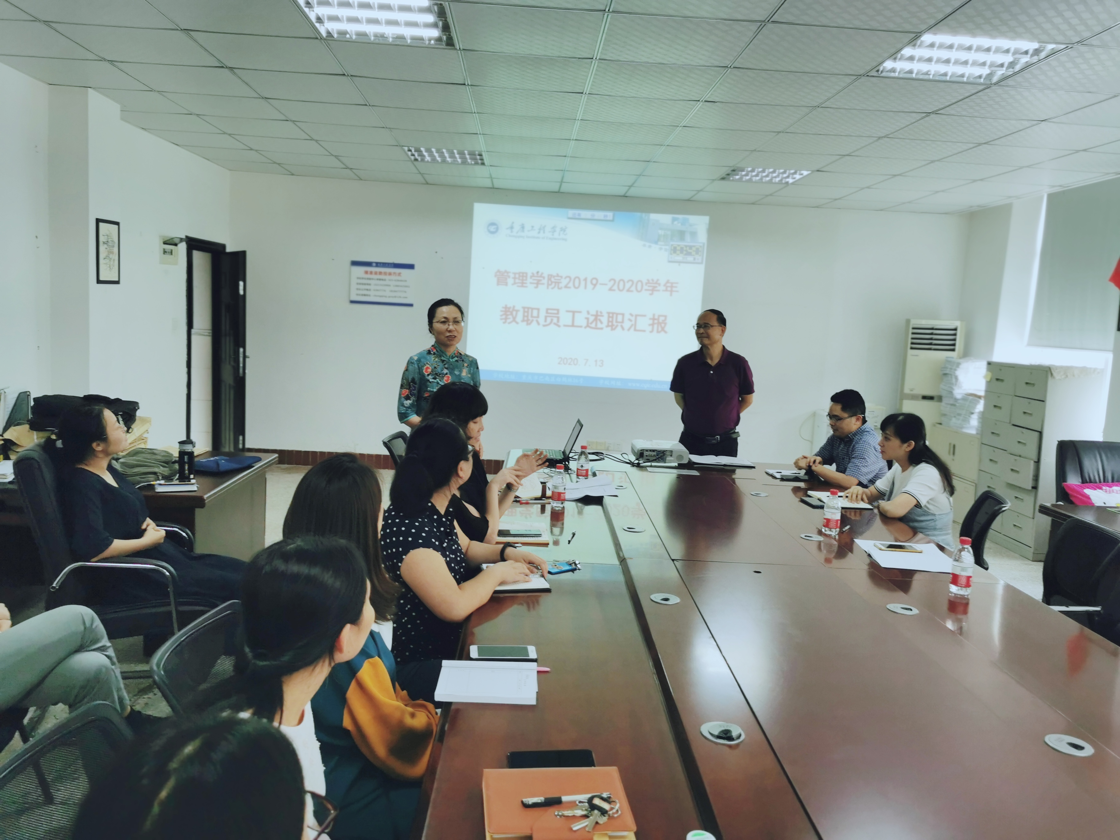 7月13日下午12:30-17:00,在3404和3101,管理学院组织了2019-2020学年教师述职总结会,全体专任教师和辅导员老师们,对过去一学年的教育教学、教研教改等各项工作进行了总结和汇报。