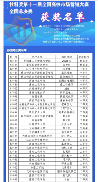 2020年9月19日,社科奖第十一届全国市场营销大赛举行了全国总决赛。我校管理学院选派的参赛队伍一举获得包括全国一等奖在内的11项大奖。