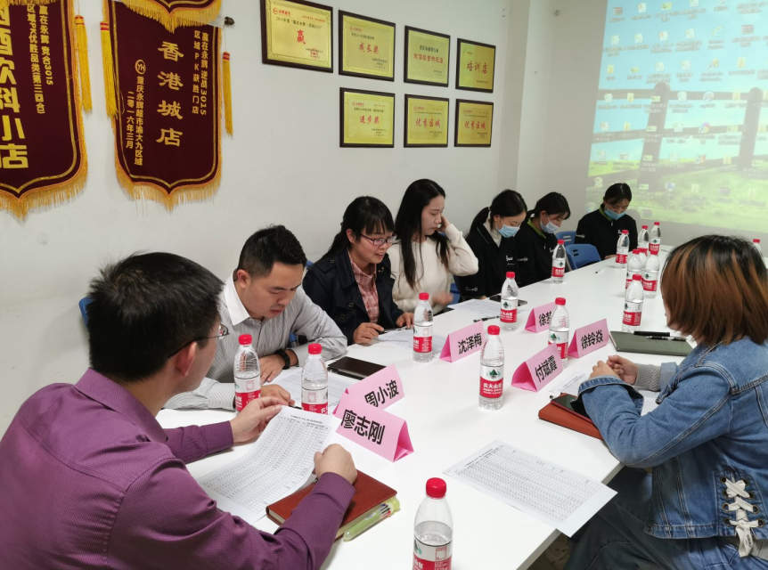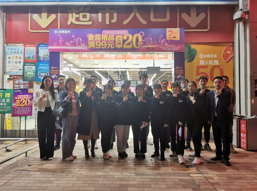 2020年10月27日下午,管理学院工商管理系主任周小波、永辉订单班班主任沈泽梅老师、学工部辅导员徐梦琳老师一行拜访永辉超市香港城店和大坪店,并与永辉超市区域总经理高邦红、区域食百总教练廖志刚、1933项目负责人王粒和付斌霞、门店带训教练一起召开校企生三方座谈会。