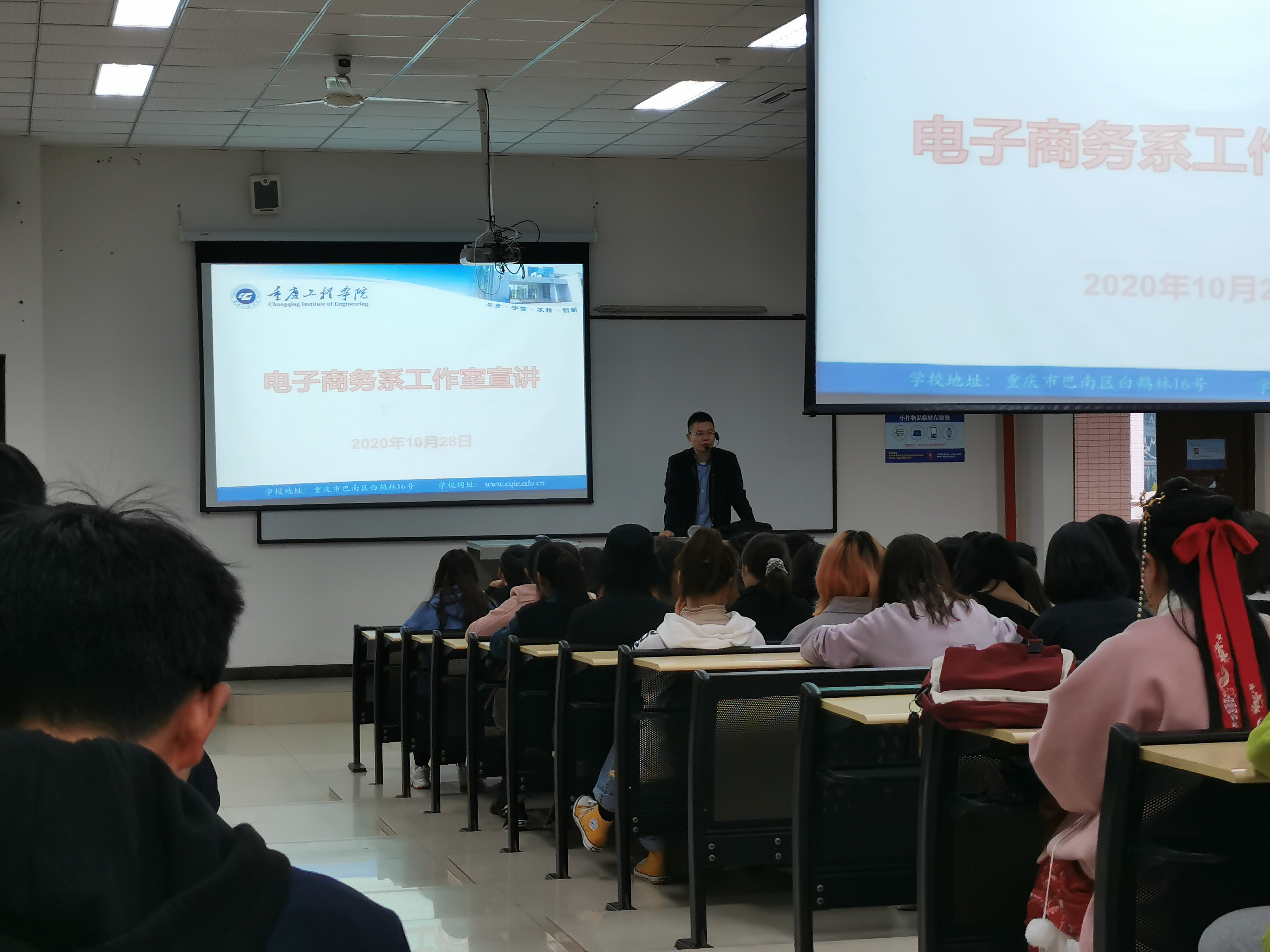 为贯彻学校“校企合作、产教融合”的办学理念,培养“理论基础好、综合素质高、专业能力强”的应用型本科人才,2020年10月28日 下午2时,管理学院2019级电子商务专业学生在六教楼202教室进行了电商工作室宣讲及纳新活动。