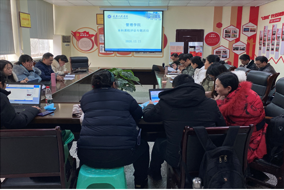 为掌握课程建设现状,提升教育教学质量,12月23日下午,工商管理系在3101会议室组织开展本科课程评估专题活动,活动由教务科朱凤老师主持,李玲副院长、各系主任、工商管理系全体教师参加了本次会议。
