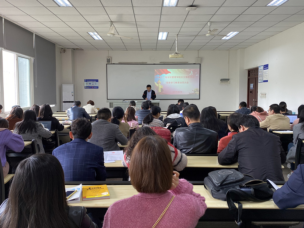3月17日下午,管理学院在6113召开党史学习教育动员大会,党总支书记刘达斌同志对学院全体教职工进行了党史学习教育动员。