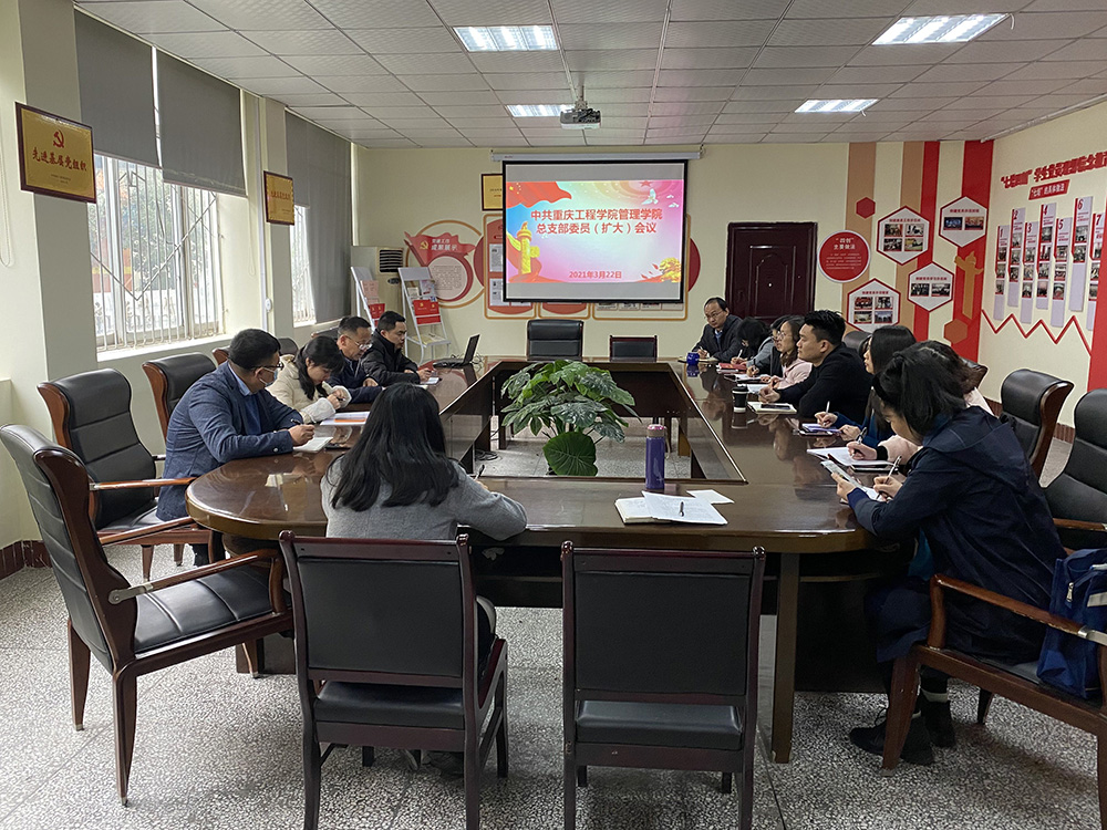 会上,刘达斌同志宣读了《中国共产党重庆工程学院管理学院总支部委员会关于总支部及下属党支部委员分工调整的通知》(管院党〔2021〕2号 )文件要求,对各党组织班子分工提出了明确要求;围绕2021年中国共产党成立100周年、十四五开局年、脱贫攻坚深入年、课程思政落实年、学校本科教学合格评估冲刺年、学院党建及样板支部巩固年等重要契机,结合王董事长在中干会议上的讲话、《重庆工程学院2021年学校工作要点》、《重庆工程学院2021年党建工作要点》、《重庆工程学院开展党史学习教育实施方案》、《重庆工程学院“三讲三进三比”实践教育活动方案》、《重庆工程学院2021年师生政治理论学习计划》等文件精神;专题研讨并明确了“三会一课”规范性,党员发展流程规范性,党建主题活动开展规范性,党史学习教育常态化,党员工作站、临时党支部、联合党支部的建设与管理,以及标杆院系、“双带头人”教师党支部书记工作室、学生党支部书记工作室等项目结项等2021年党建重点工作。会议还讨论了党建带群团建设等其他事项。