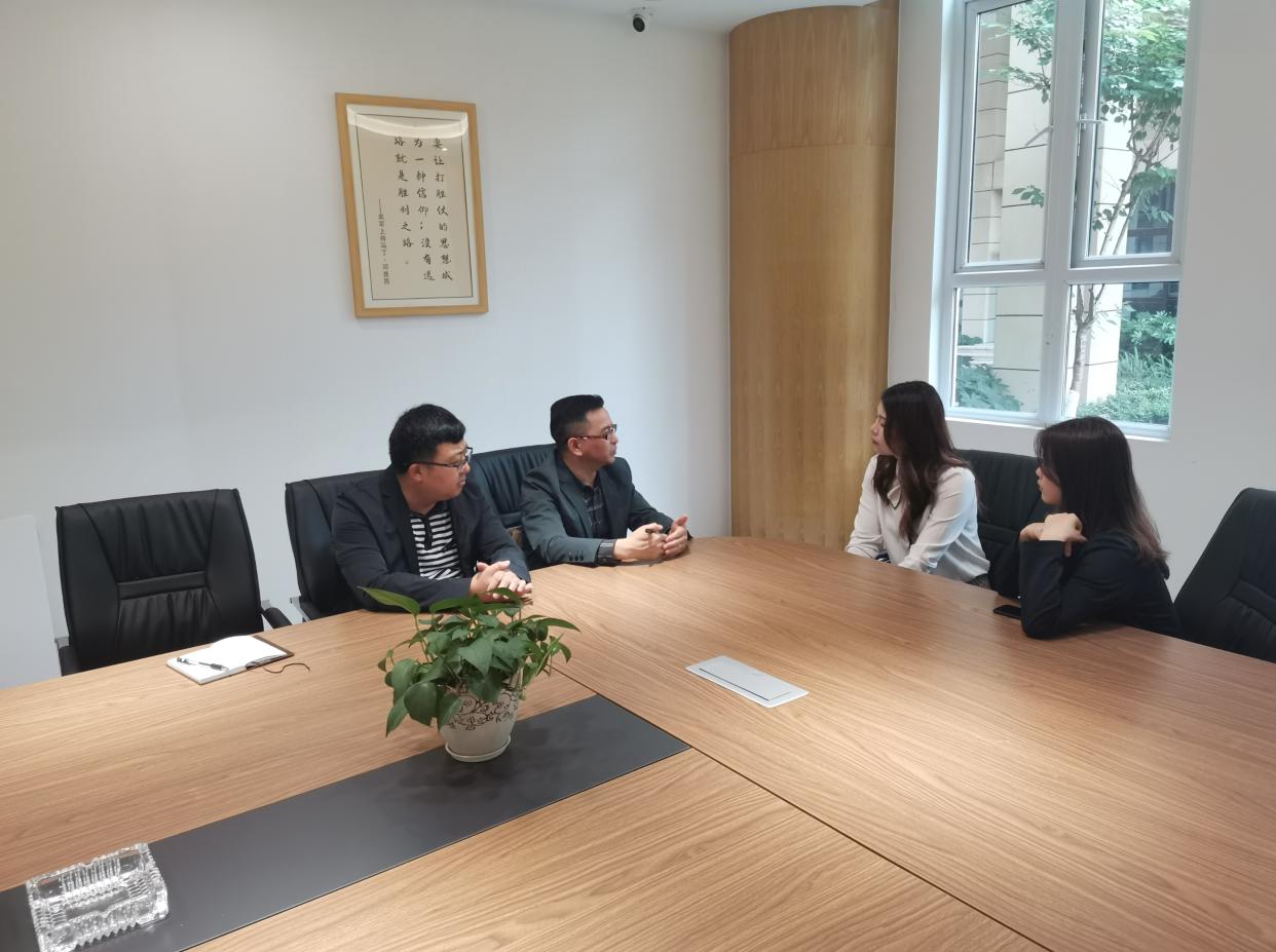 2021年4月23日重庆工程学院校长助理简玉刚助理带领管理学院副院长李英吉、电子商务系主任宋超赴渝北区国盛IEC中心与重庆亚马逊卖家孵化中心就校企合作开展交流。
