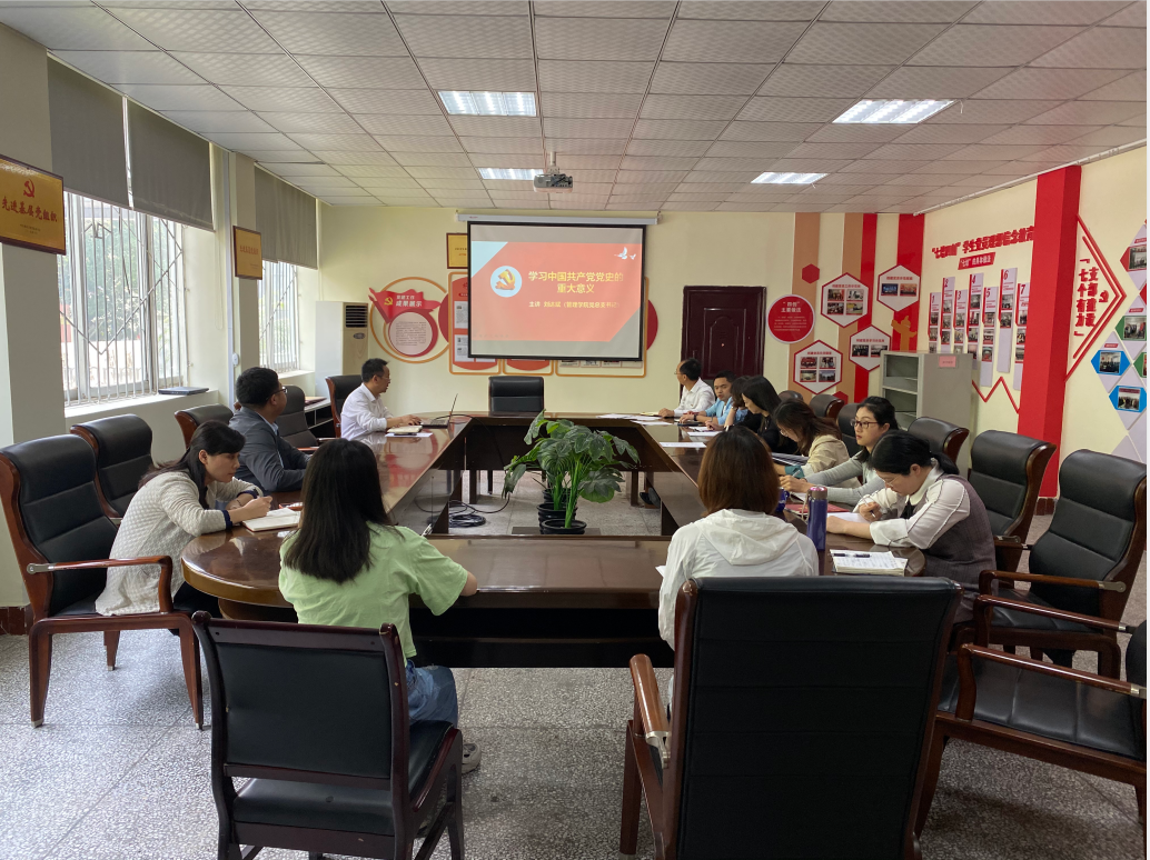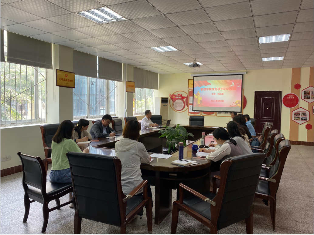 为深入开展党史学习教育,从党的百年伟大奋斗历程中汲取继续前进的智慧和力量,2021年5月8日14:30,管理学院党总支刘达斌同志以“学习中国共产党党史的重大意义”为主题,为部分教师党员上了一堂生动的专题党课。