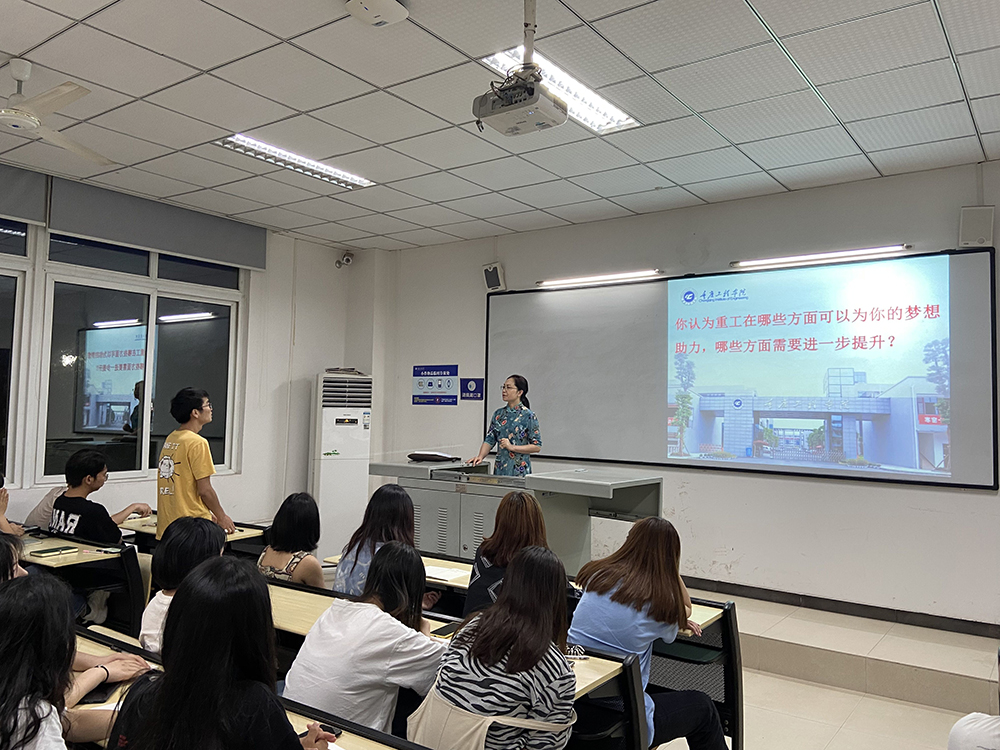 王校长通过学校建校二十年的艰苦创业的奋斗史开启主题班会。她以一张张老照片、一个个传奇人物故事,和同学们详细讲述了学校的发展历程,并描绘了学校发展蓝图。随着照片从模糊到清晰,由黑白变彩色,校园由小变大,设备由差变好,同学们无不感叹学校二十年奋斗的辉煌成就,也憧憬着学校未来的美好前景。主题班会后,王校长与同学们亲切互动,倾听同学们未来规划和对学校发展的建议,并鼓励同学们要以积极乐观的青春心态、不断进取的求知劲头、积极探索的拼搏精神,结合学校本科教学合格评估契机,严格自律,学会学习,专注学习,坚持学习。