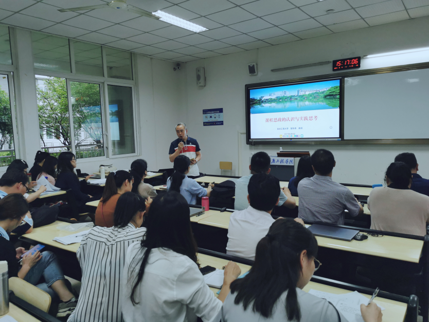 他分享到,教师们可以践行五条建议,做四有好老师。第一是要有一个意识,教育育人、立德树人;第二是做好两个统一,教育与育人的统一、言传与身教的统一;第三是练好三项基本功,会挖掘课程思政元素、能把课程思政融入教学、做到常学常新;第四是做好四进,思程思政进头脑、进教材、进课堂、进考核;第五是践行五个环节,选好课程教材与参考书、筑牢课堂讲授的思想政治性、优化课堂教学设计、严格课堂教学管理和强化课堂考核育人。