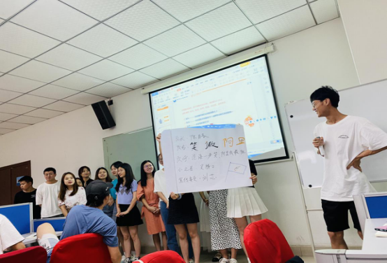 在开训仪式上,还开展了团队建设活动,同学们在各小队长的带领下,设计队旗、队呼、队名等,同时还在小组内设置了小记者、宣传委员来记录培训期间的精彩时刻。在风采展示环节,同学们积极主动地上台展示,现场氛围活跃,展现了同学们对项目实训的热情。