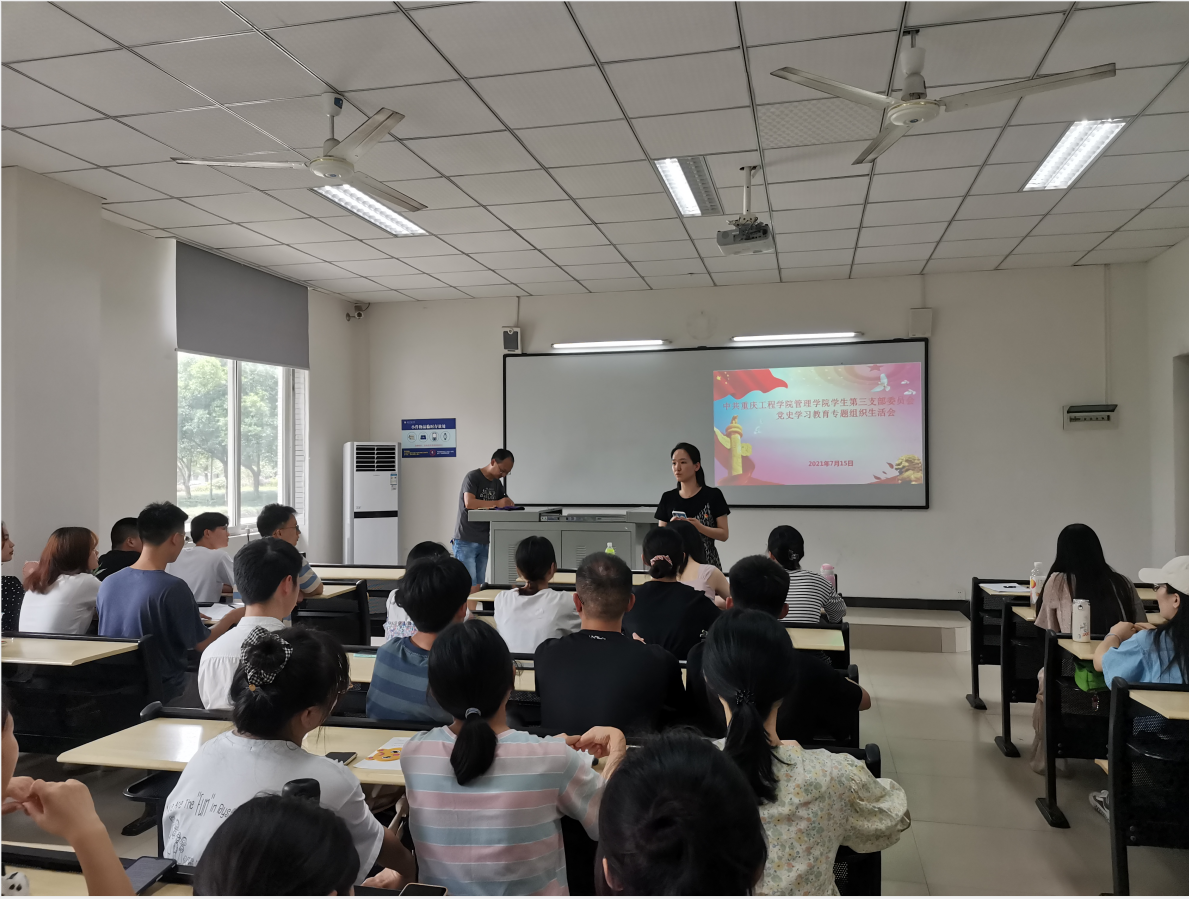 为进一步引导广大党员坚定理想信念,做到知史爱党、知史爱国,认真贯彻“学史明理、学史增信、学史崇德、学史力行”要求,通过交流学习体会,查找差距不足,引导广大党员增强“四个意识”、坚定“四个自信”、做到“两个维护”。2021年7月17日、7月15日,管理学院学生第一、第三党支部分别在6211、6115召开了党史学习教育专题组织生活会。与会人员有管理学院学生第一、第三党支部正式党员、预备党员,会议分别由一支部书记宋曼、三支部书记王燕楠主持。