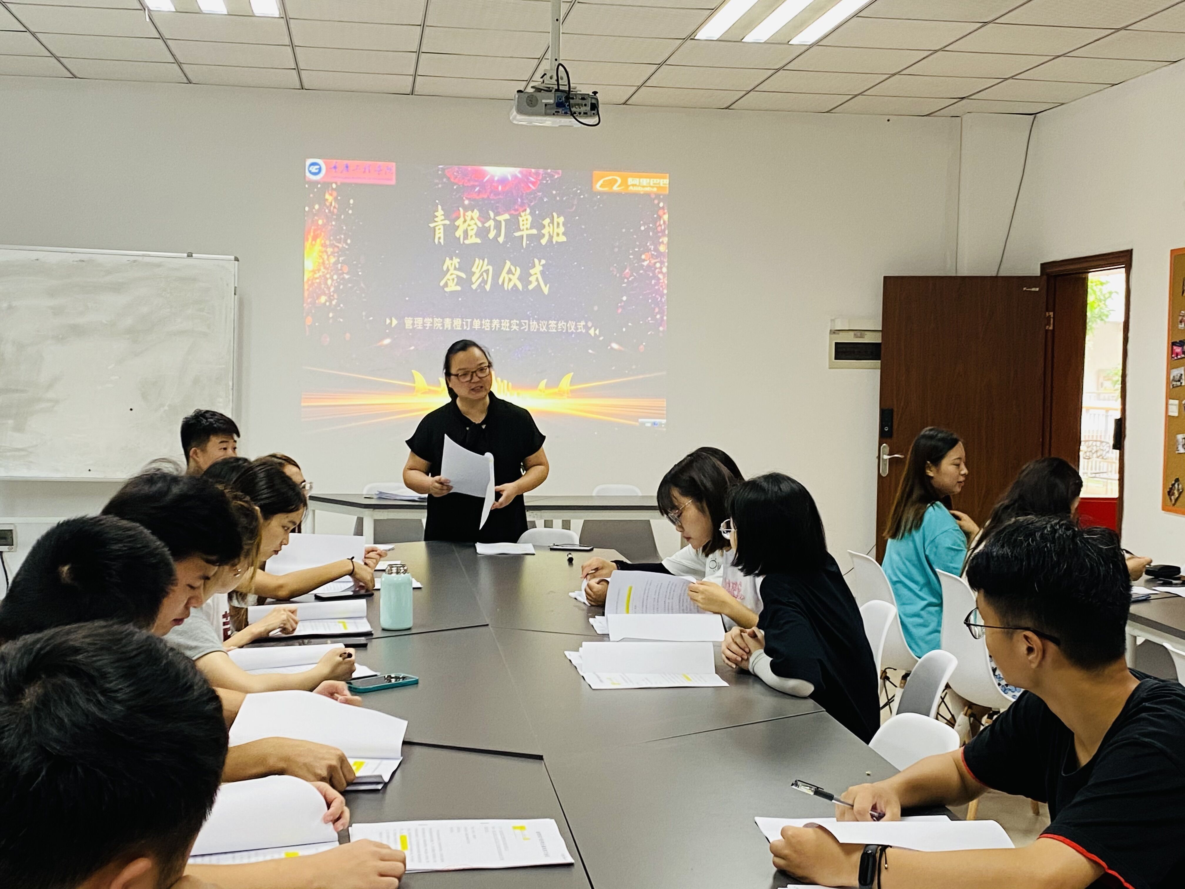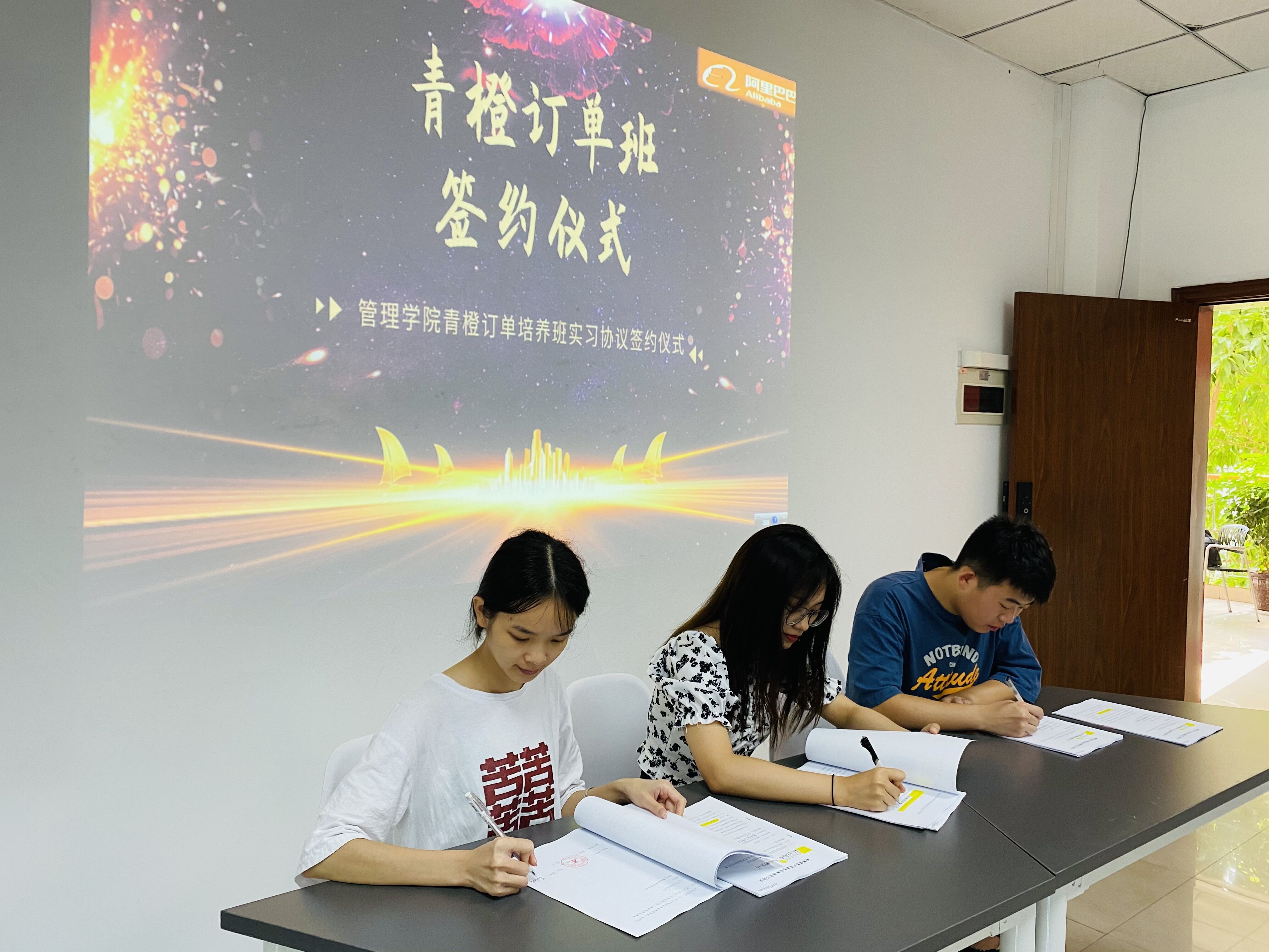 阿里巴巴新零售人才孵化基地18级青橙订单培养班实习协议签署仪式于2021年7月21日在实习楼304室顺利举行。本次实习协议签署仪式分别于早上8点30分和中午11点30分两场进行,共85名同学参加。