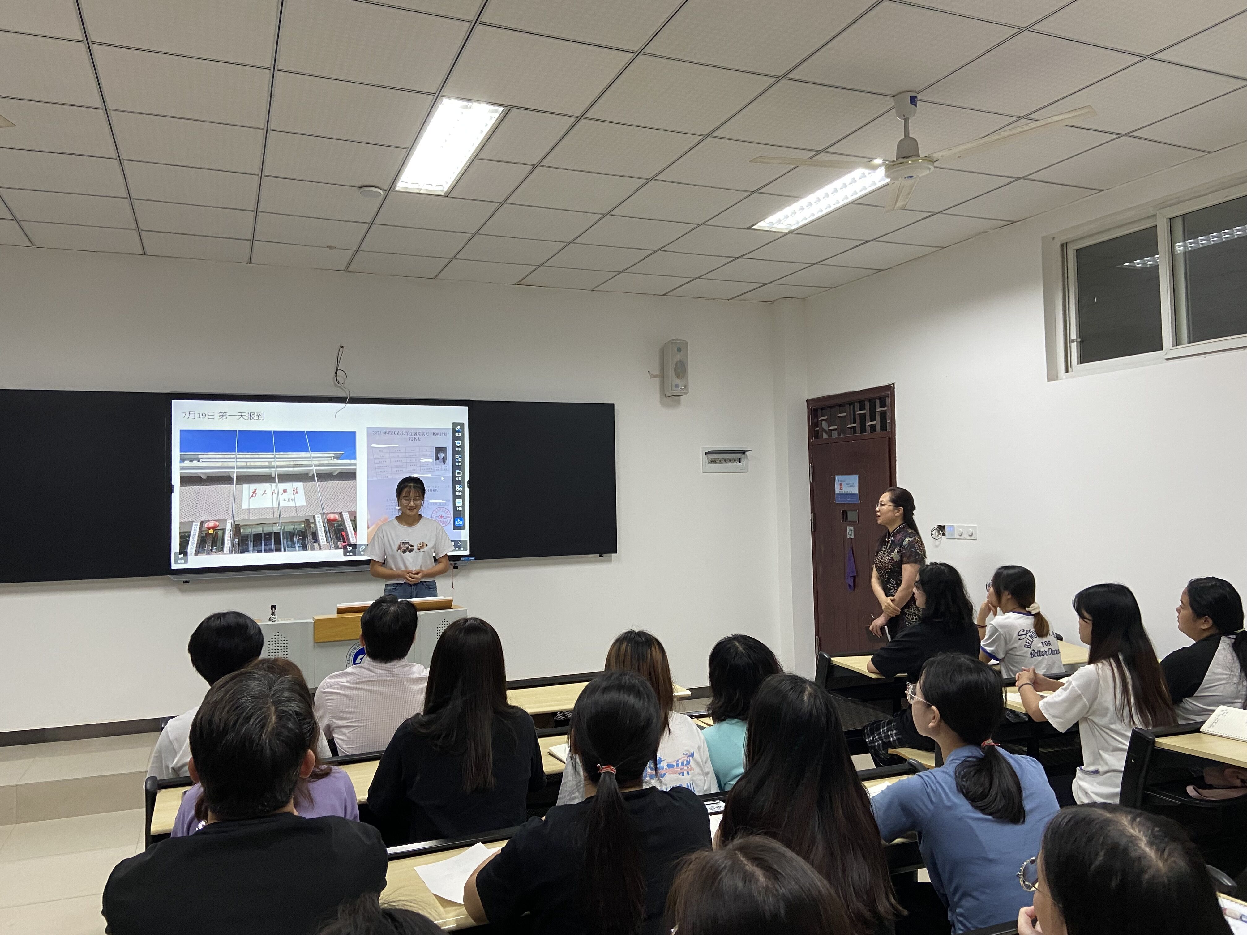 王校长先给同学们播放《开讲啦》最新一期——中国航天员“女教头”黄伟芬的视频,带领着大家一起了解“女教头”黄伟芬的事迹,为黄伟芬几十年坚持不变的初心点赞。接着,她与同学们亲切互动,倾听同学们暑期的精彩经历和成长心得,对同学们暑期参与的实习工作和志愿服务工作给予充分肯定和赞赏。宋廷昌在发言时表示,希望同学们将理想融入现实,做好学业和职业规划,努力学习,严于律己,将大三学习生活安排充实。