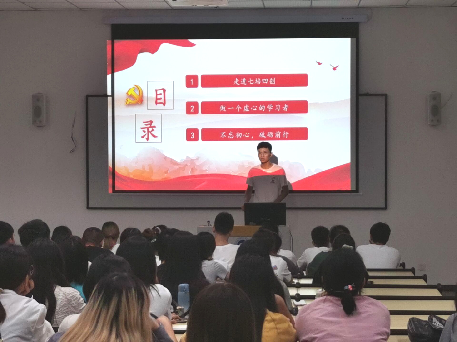 新学期新面貌,为进一步深化新时代学生党员理想信念,帮助学生党员坚定共产主义信念。2021年9月6日20:30,管理学院学生党员实践教育中心于6202教室开展了“开学第一课”主题活动。本次会议由管理学院学生党员实践教育中心教育培训部负责人邓海涛主持,参加本次会议的有管理学院各学生党支部的预备党员以及管理学院学生党员实践教育中心全体成员。