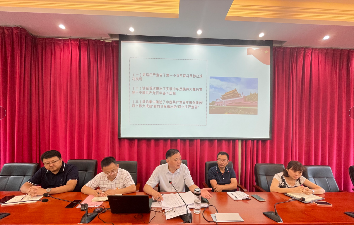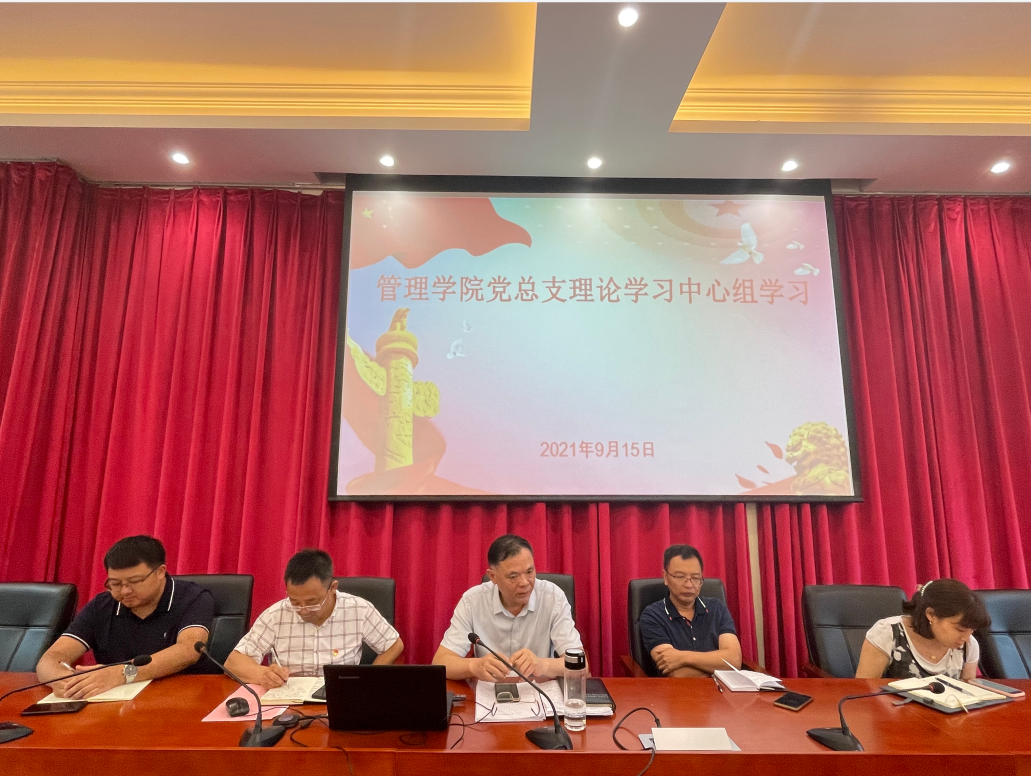 为认真学习贯彻习近平总书记在庆祝中国共产党成立一百周年大会上的重要讲话精神,提升管理学院党总支理论学习中心组党员对习近平总书记“七一”重要讲话精神的理解水平,管理学院党总支邀请学校党委委员桂国庆校长于2021年9月15日16:00-18:30在办公楼206会议室,为管理学院党总支理论学习中心组宣讲习近平总书记“七一”重要讲话精神。管理学院党总支委员,各党支部书记、组织委员,行政班子成员,各系各科室负责人,民主党派代表参加学习,管理学院党总支书记刘达斌同志主持宣讲学习。