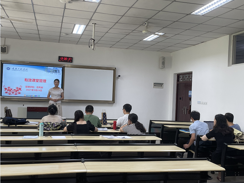 课堂管理的技巧是衡量一位好老师的标准之一,为了提升新教师的课堂管理技巧,帮助新教师尽快站稳讲台,2021年9月24日,在6106室,由但秀丽老师组织了课堂管理的培训。
