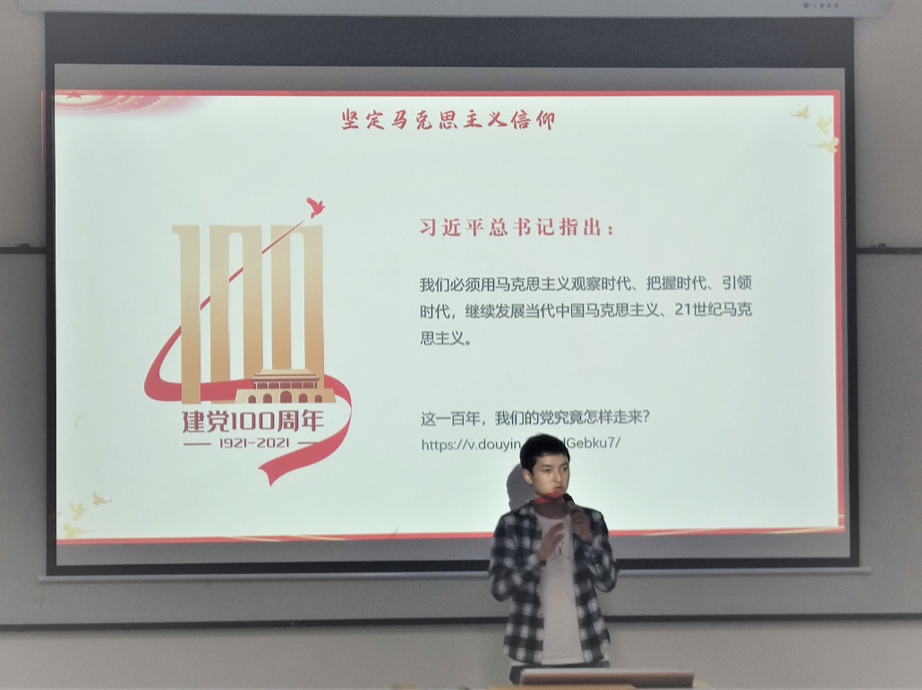 竞赛内容涵盖中国共产党发展历程、党的相关会议和重大事件、党章规定和党的相关论述,设有填空题、选择题、简答题,分必答、抢答、综合阐述共三个环节,同学们均经过了认真准备,热情高扬,回答游刃有余。大家认为,本次活动既增加了交流,又再次普及了党的相关知识,提升了政治理论水平。竞赛中,学生党员段江龙有感而发,围绕最近热映的《长津湖》,回顾了抗美援朝的艰苦历程,鼓励大家赓续红色血脉、弘扬伟大建党精神,争做新时代弄潮儿。