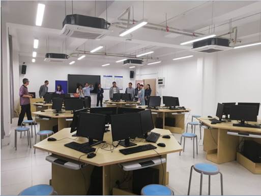 随后,在范主任带领讲解下,我们参观了整个经管中心实验室建设、运行现状。中心现有实验室30个,服务于经济学院、会计学院、金融学院、工商管理学院、公共管理学院、管理科学与工程学院等6个学院,分布于中心1-5层,均配置了先进的教学软件、硬件等设备,满足经管专业1万余名本科学生的教学、竞赛等需求。
