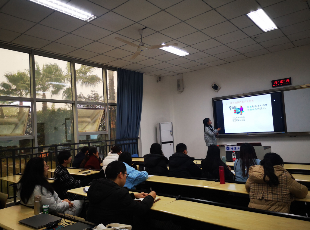沈老师主要通过讲解统计指数的编制章节内容,向新老师们展示如何有序开展理论知识教学和组织。首先是引出话题:什么是指数?举例蓝天指数、幸福指数、居民消费价格指数;接着讲解指数按性质主要分为数量指标指数和质量指标指数;再讲综合指数如何编制时要识别两个因素:指数化因素和同度量因素;最后通过案例区别指数化因素和同度量因素。